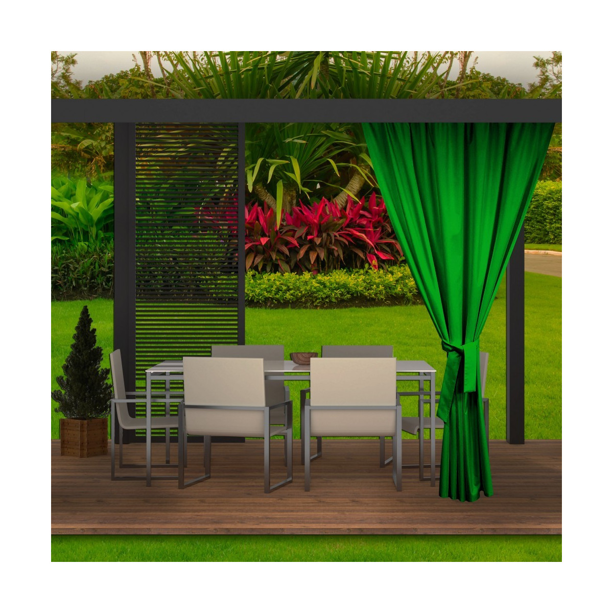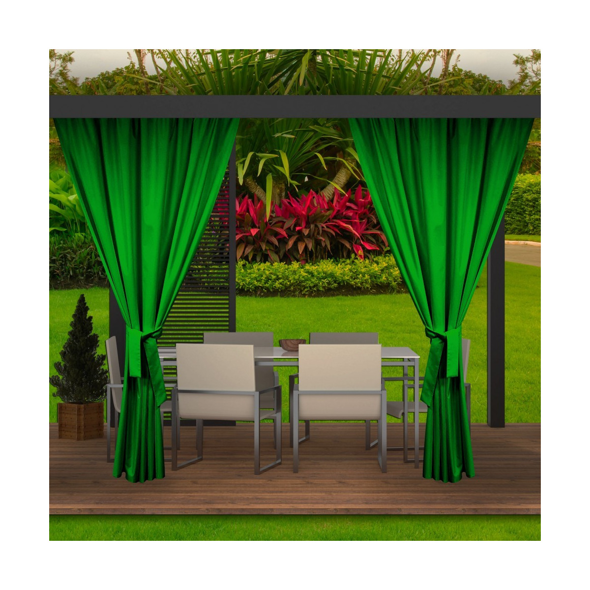 Designové závěsy do altánu v zelené barvě