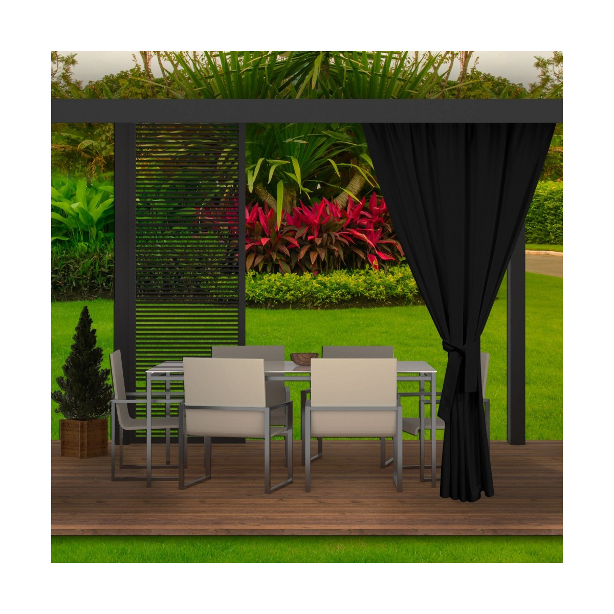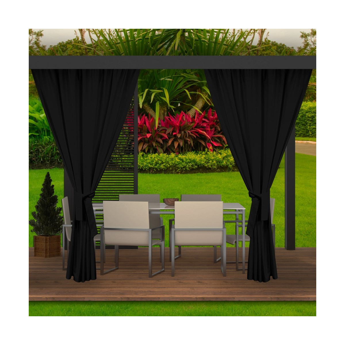 Během teplých letních a jarních dní rádi trávíme dny venku, abychom si užili odpočinek s rodinou. Čím dál více se rozhodujeme pro koupi altánků a jiného zahradního nábytku. Naše zahradní závěsy se postarají o jejich správné nastavení. Dodávají nejen šarm, ale mají také spoustu dalších výhod, například praktických. Venku jsou naše sedačky a stolky více vystaveny nečistotám. Díky voděodolnosti nás terasové závěsy ochrání před deštěm. Jsou odolné vůči slunečnímu záření, takže jejich barvy na silném slunci nevyblednou.