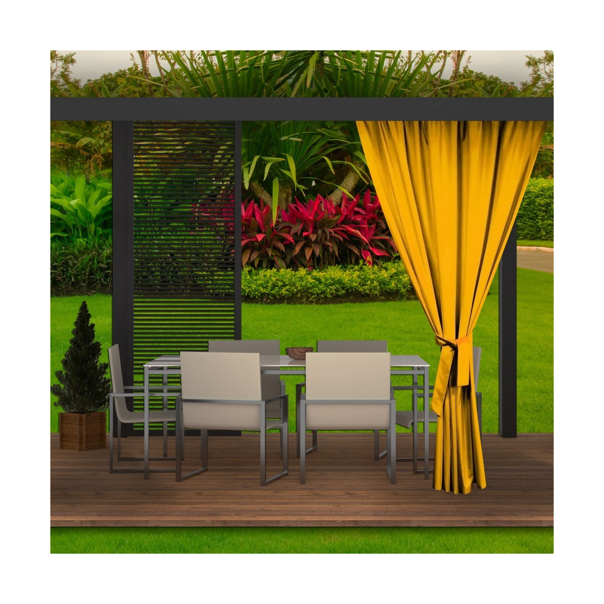 Moderní závěsy do altánků v žluté barvě